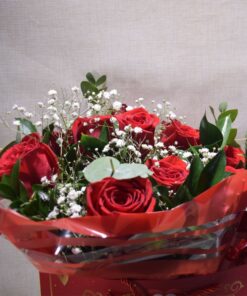 12 Rosas Rojas de Calidad Premium: Símbolo universal del amor apasionado, seleccionadas por su frescura y apertura perfecta.