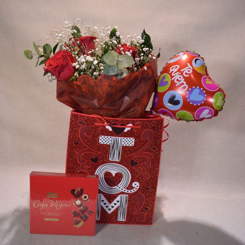 ¡Díselo con flores y chocolates! Reserva ahora tus 6 rosas rojas en bolsa TQM y haz que este San Valentín sea inolvidable.