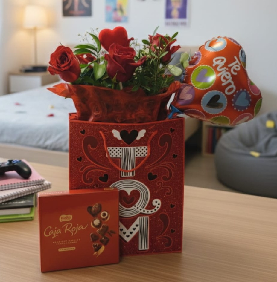• Caja de Chocolates: El toque dulce ideal para acompañar el aroma de las rosas.