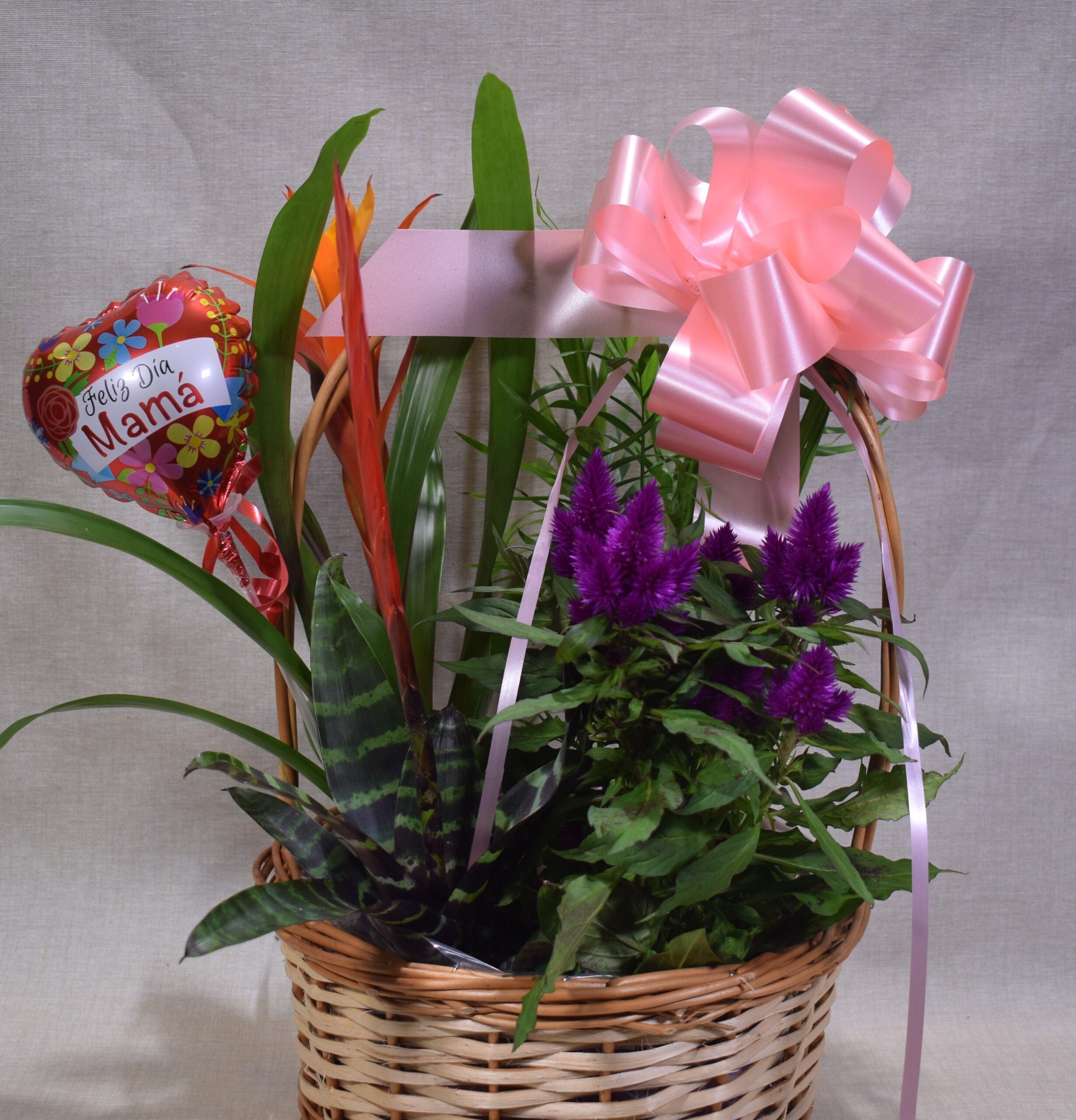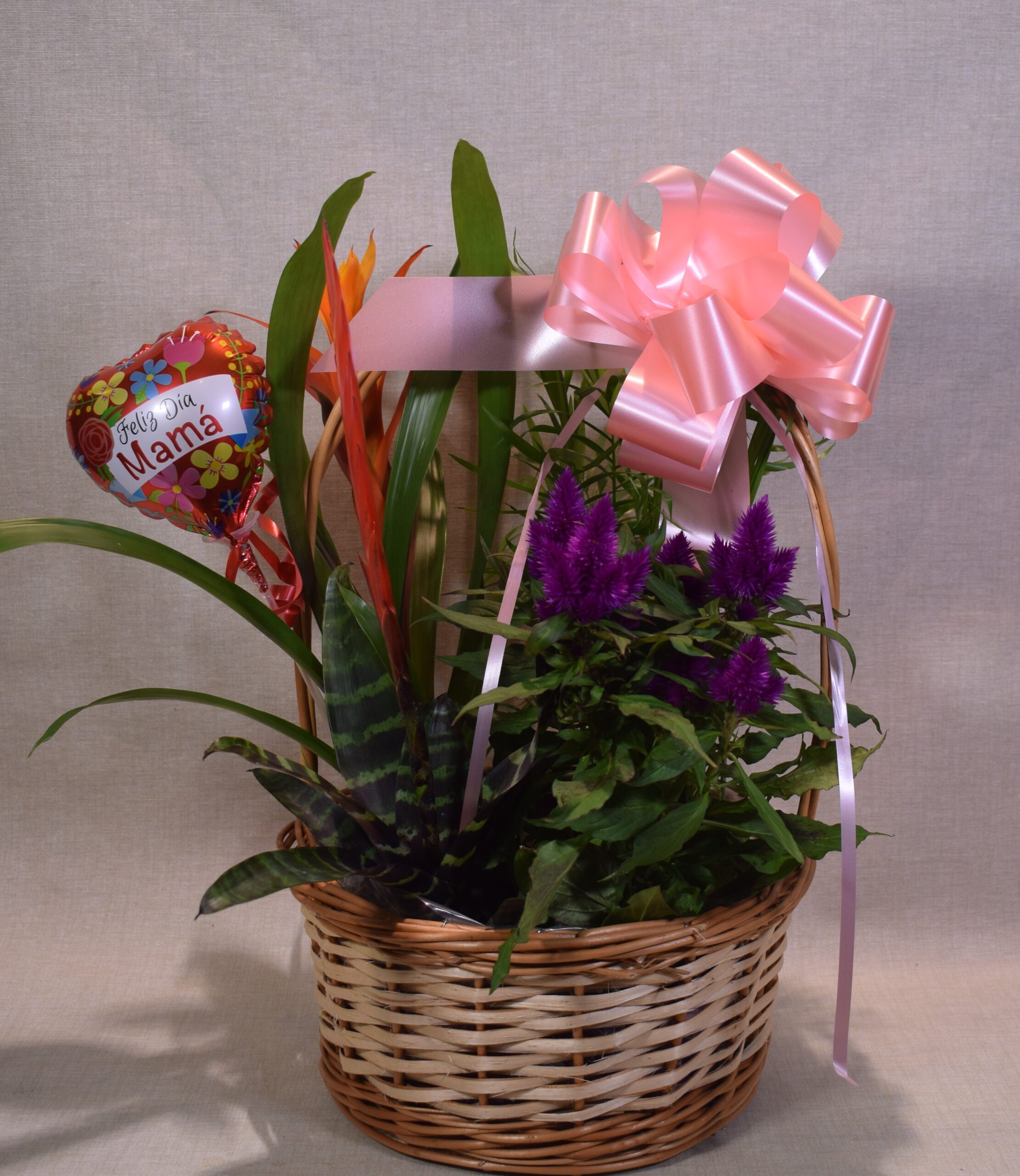 Nuestras cestas están cuidadosamente diseñadas por floristas expertos, combinando variedades de plantas verdes y de flor que simbolizan el amor y la gratitud. Desde la elegancia de la Spathiphyllum hasta la alegría de las Begonias o el toque exótico de las Orquídeas, cada cesta es una pieza única.