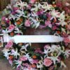 Corona para condolencias FR5, fina y elegante en color blanco de flores variadas incluyendo rosas